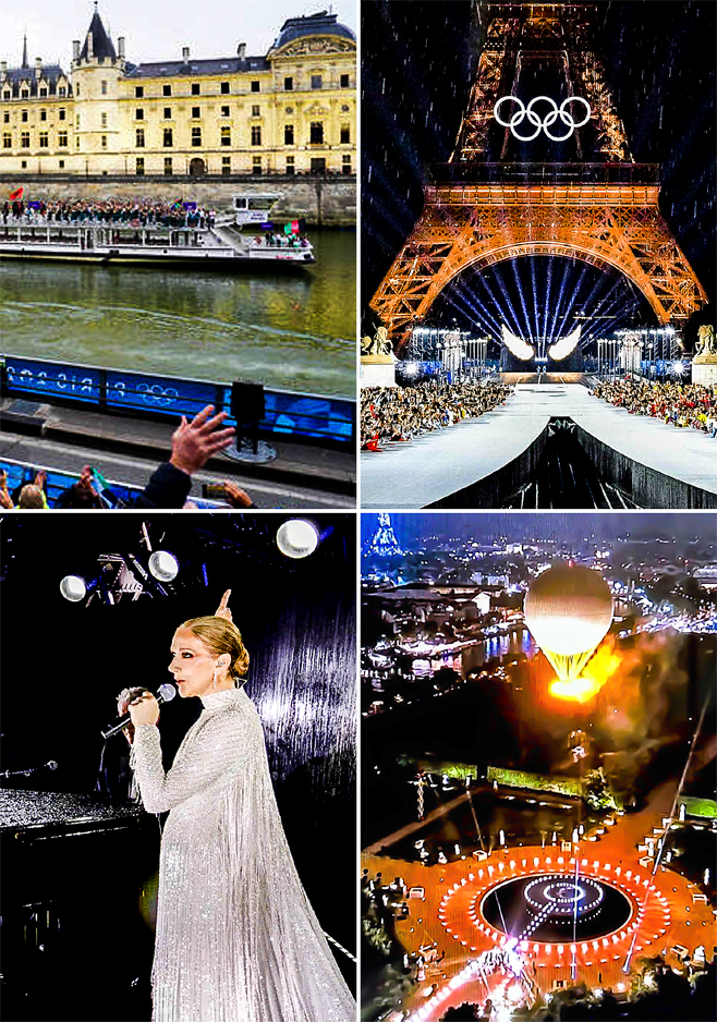 その開会式は想像を絶するショーを見せてくれた。会場はメインスタジアムでなくセーヌ川と川沿いの歴史的建造物や広場を使う初めての試み。セーヌ川を各国のボートに乗った選手団が下る。川の両岸はノートルダム大聖堂やルーブル美術館など正しくパリを象徴する歴史的建造物が立ち並び、土手ではフレンチカンカンやミュージカルなどのショーが華やかさを演出した。エッフェル塔を望むトロカデロ広場に式のメイン舞台が設えられ、塔がライトアップされるのを望みながらギリシャ劇を見ているような雰囲気である。エッフェル塔のテラスからディオールの衣装に包まれたセリーヌ・ディオンが愛の讃歌を歌う。