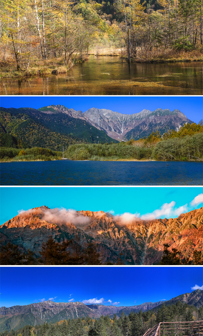 河童橋は相変わらず人が多いが、インバウンドの人々が大勢来ていた。欧米の山は雄大であるが雪に覆われていて単調なのに比して上高地の景色は色彩が豊か特に秋の今は惚れ惚れするほど美しい。ミシュランの評価も高いので来るのだろう、本格的な登山姿のグループにも会う。