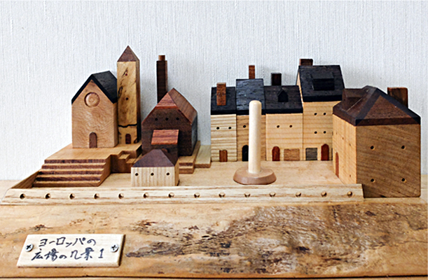 私はその思い出の時間を記憶に残したいと、以前作った「ヨーロッパの広場の風景」と題するミニチュアを贈り物とした。