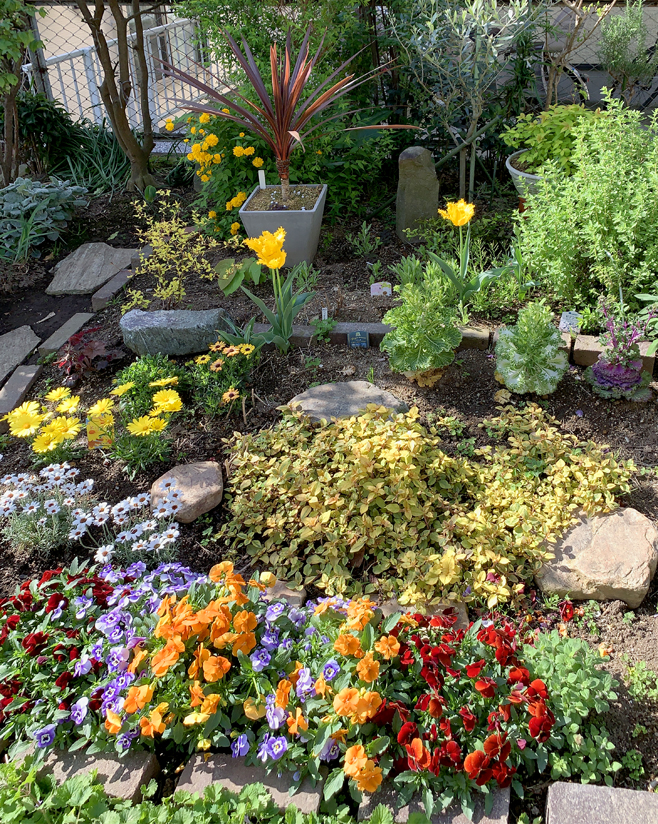 その脇に新たに白のローゼンセマムと黄色のキララを植えて少し春らしい感じになって来た。