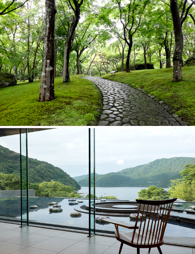 今宵の宿は湖尻にある〈はなをり〉、ロビーからは紫陽花の花が浮く水盤越しに芦ノ湖が見える素晴らしい景観が広がっている。この宿は若い女性をターゲットに宛てているのだろうか?食事、温泉、サービスそして景観などからそれは想定でき、お客の大分は平日なのに若い女性グループやカップルで一杯だった。翌日は思いもかけず雨が上がり晴れ間も見える。芦ノ湖を見下ろす景色は今まで箱根では見たことないもので、足湯に浸かりながらコーヒータイムを楽しむと癒されるだろう。