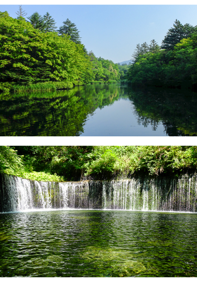翌日は朝早く樅の並木道を歩き雲場池に出掛け鏡のような湖畔に木の緑と青い空が映る静寂な世界にしばし都会の喧噪を忘れ、戻ってからのホテルの朝食は美味しい時間であった。旧軽から森の坂道を久しぶりのスカイラインで気持ちよく走り白糸の滝に行った。富士の白糸の滝に比べると規模は小さいが木々に囲まれた地面から滲み出てくる湧き水が円弧の岩肌を白い筋のカーテンの様に蔽い湖面に落ちる姿は静謐と表現するに相応しい景色であろう。山を下り星野エリアにある石の教会によってからハルニレテラスの木陰のベンチで美味しい沢村ベーカリーのパンと永井ファームのジェラードを楽しみ、二日間の軽井沢の休日を終えた。