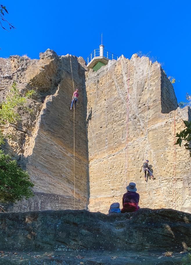 ここは昔の石切場があり磨崖仏を見ながら起伏に富んだ山歩きと東京湾の眺望、さらに神武寺へ下る山道ハイキングも楽しめる。頂上付近では石切場の垂直の壁を使いロッククライミングの練習をしている。その様子を眺めながらおにぎりを食べたが、自然の風景を見ながらの食事は何よりも贅沢な時間だ。
