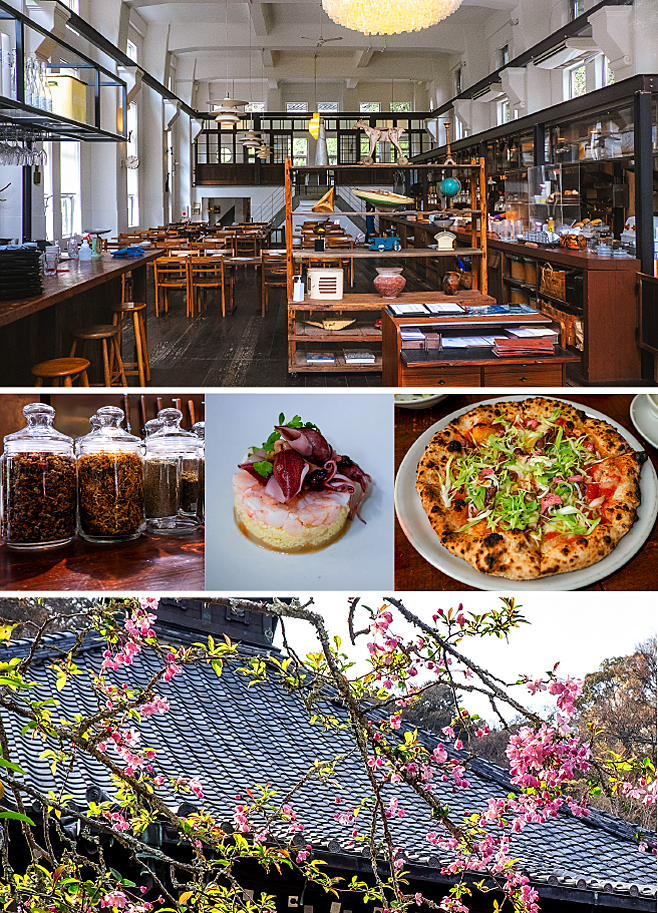 桜も開花しこの日に限って晴れの天候になり最高の日和になった。レストランは建物だけでなく裏山にハーブ園を拓き山歩きもできる、そして地下の元機械室は酒類のショップになっているため楽しみ方が多様である。室内は天井が高く広々としていてクレーンなど昔の面影を残す工夫もなされていて素晴らしい空間になっていた。